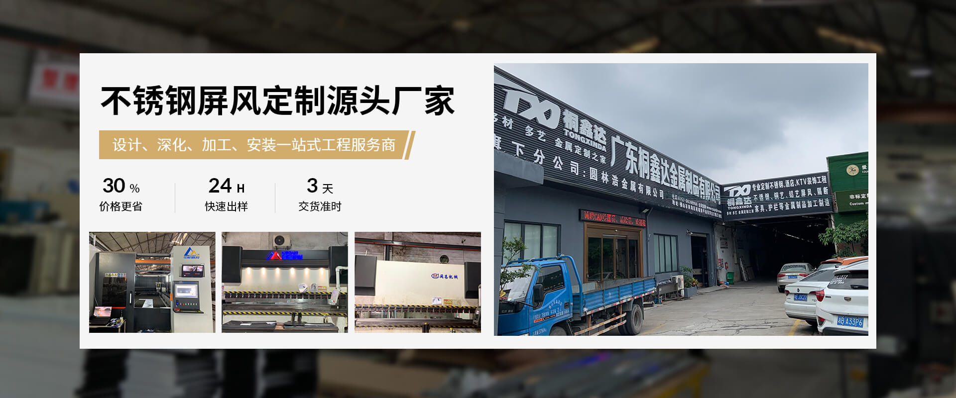 廣東桐鑫達(dá)金屬制品有限公司成立于2014年,是一家專注于高檔酒店/夜總會/高級場所金屬制品設(shè)計(jì)、生產(chǎn)及銷售安裝工程的企業(yè)。公司自成立以來,始終堅(jiān)持以“質(zhì)量求生存,誠信求發(fā)展”為宗旨,不斷滿足客戶對高端品質(zhì)的需求,努力成為國內(nèi)行業(yè)的佼佼者。